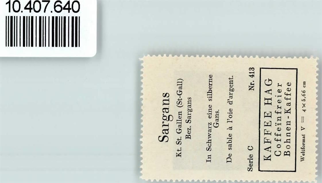 7320 Sargans - Vignette Wappen Kaffee Hag 1920-1940 Gans