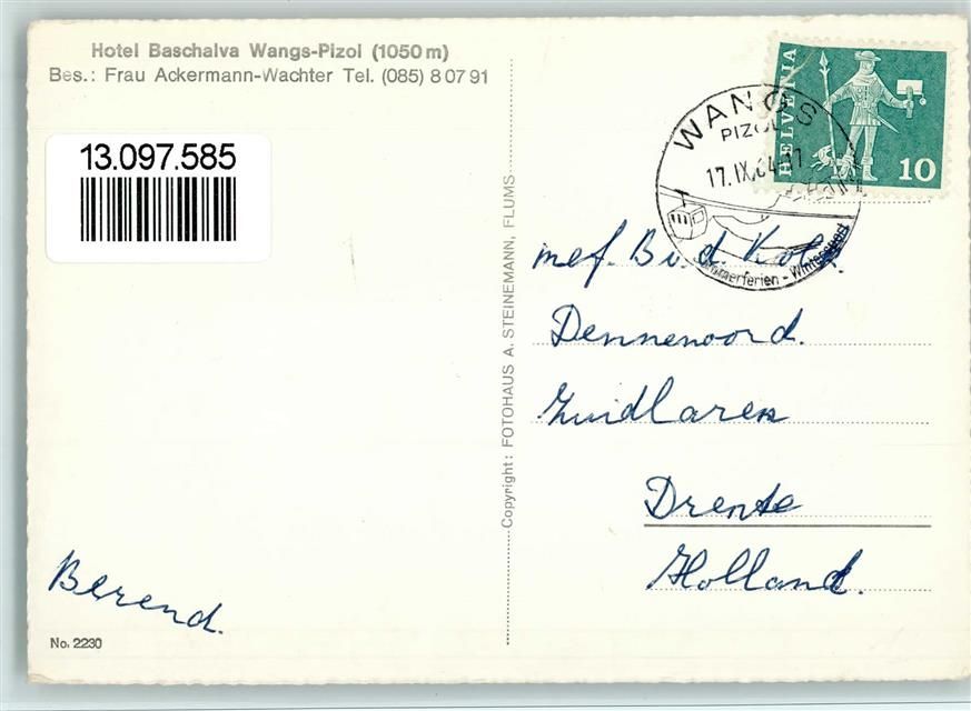 7323 Wangs 1964 Foto AK Hotel Baschalva AK