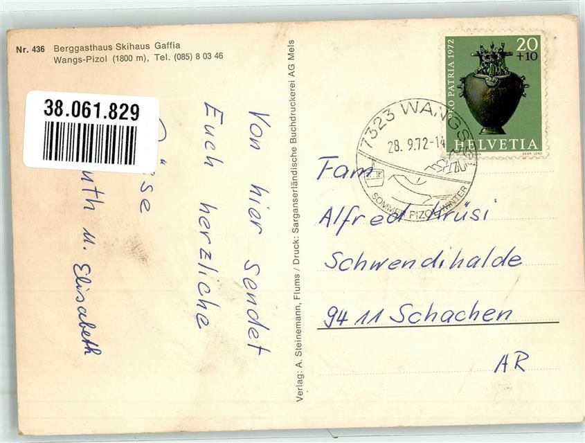 7323 Wangs 1972 Foto AK Gasthaus Skihaus Gaffia