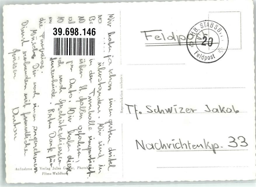 Bonaduz, Flimserstein Feldpost HB. Stabsb. 20