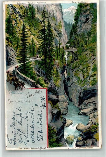 7430 Thusis 1906 Lithographie sign. Steinmann, c. Postkutsche Via Mala