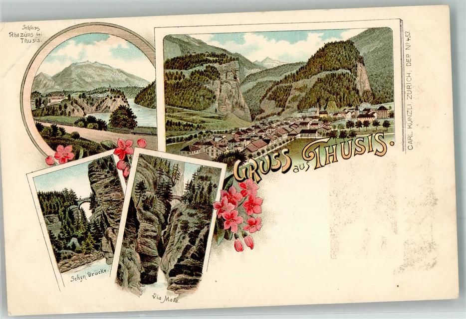 Thusis, Schloss Rhazüns Schyn Brücke Via Mala Carl Künzli Dep. No. 453