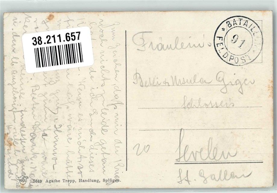 Splügen, Feldpost Bataillon 91 Dorfpartie Kirche
