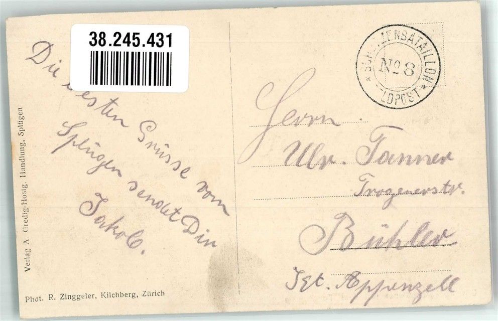 Splügen, Splügenstrasse Gasthaus Berghaus Feldpost Nr. 28