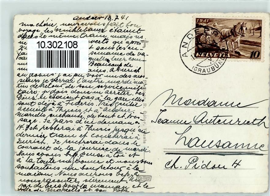 7440 Andeer 1941 Gebrauchsspuren Hotel Fravi