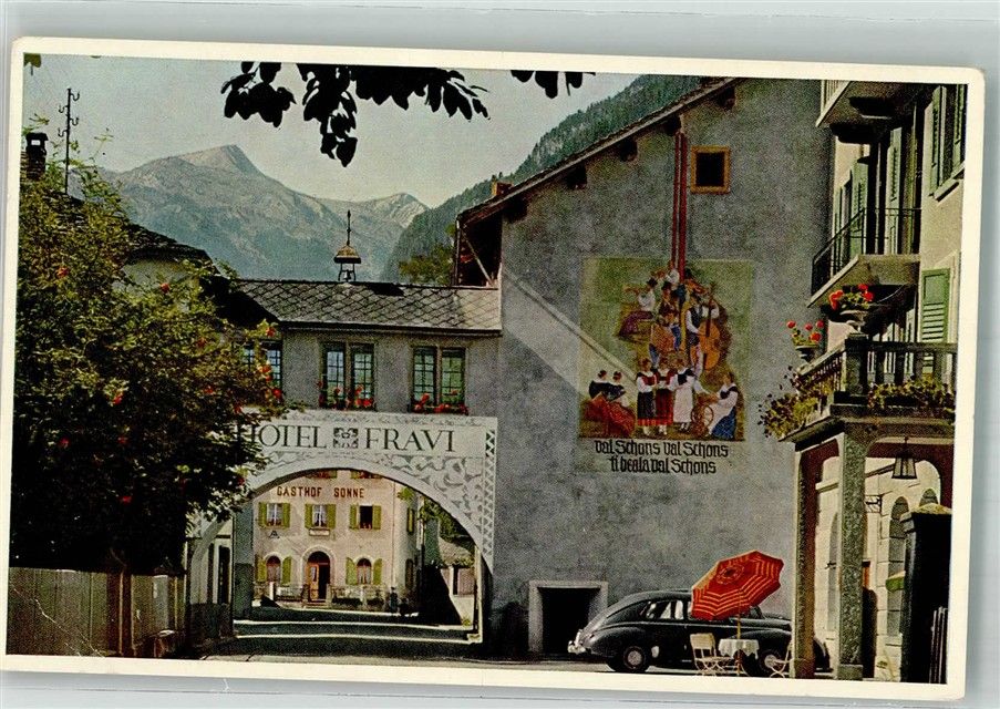 7440 Andeer 1957 Gebrauchsspuren Hotel Fravi Auto Gasthaus Sonne