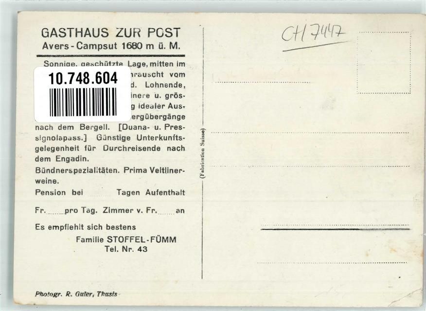 7447 Am Bach Avers Gebrauchsspuren Avers-Campsut Gasthaus zur Post