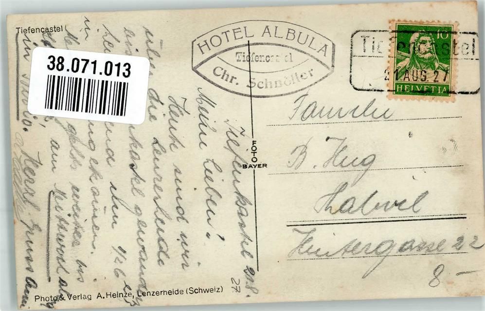 7450 Tiefencastel 1927 Foto AK Winter Hotel Albula
