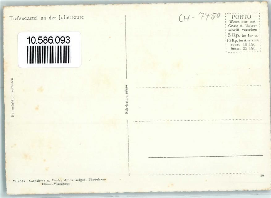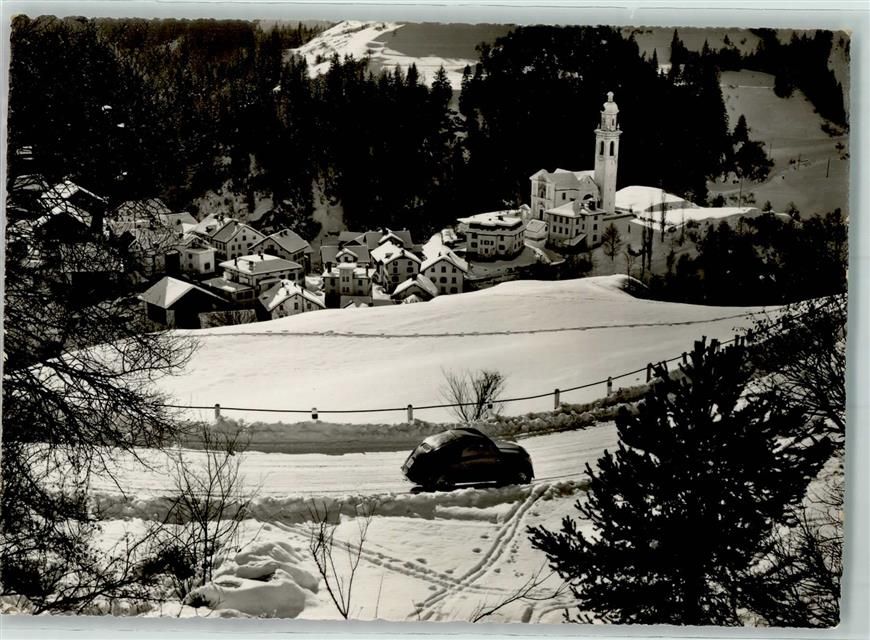 7450 Tiefencastel Foto AK Julierroute Winter Schnee Kirche Auto