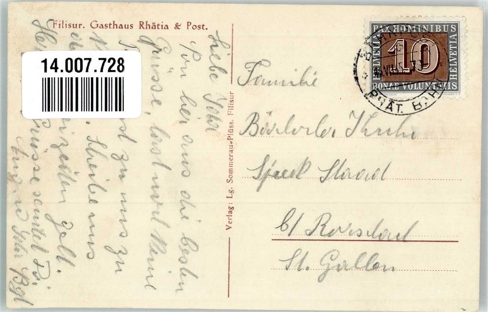 7477 Filisur 1945 Foto AK Gasthaus Rhätia Postamt