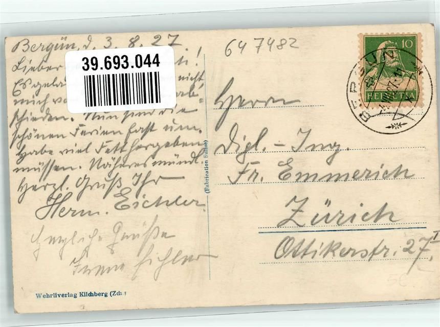 Bergün, Bündner Dorfstrasse Viehabtrieb Wehrliverlag Ort lt. Stempel