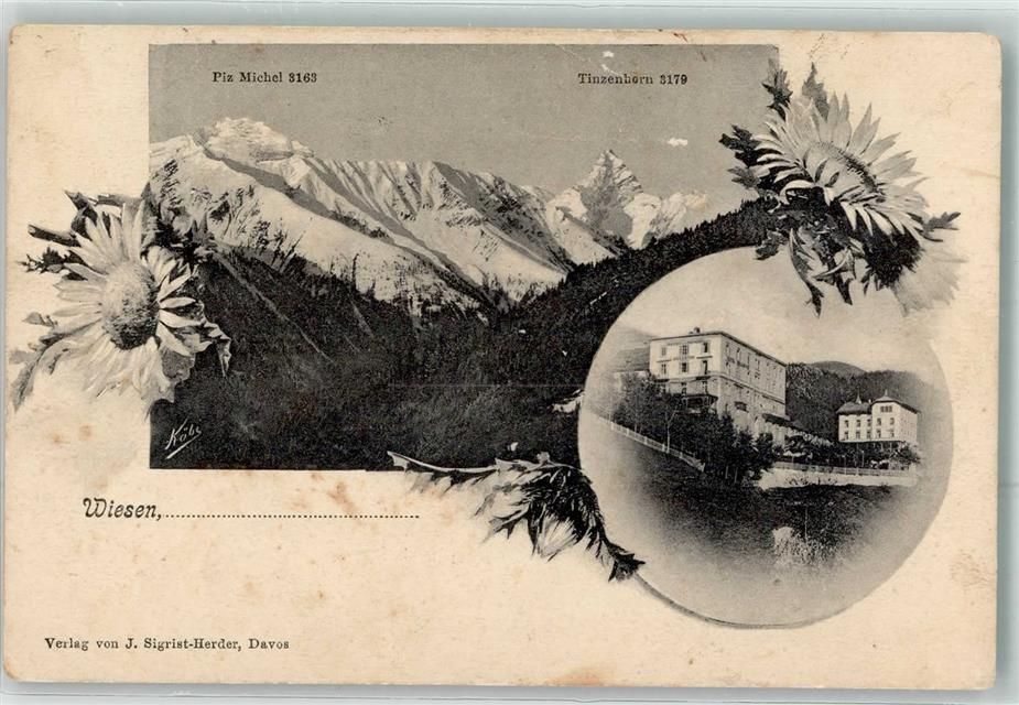 7494 Wiesen GR 1906 Gebrauchsspuren Piz Michel Tinzenhorn Passepartout