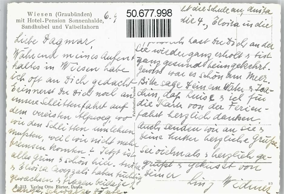 7494 Wiesen GR - Hotel, Pension Sonnenhalde, Sandhubel, Valbellahorn