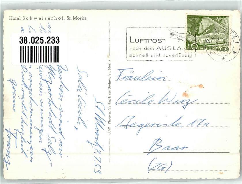 7500 St. Moritz 1959 Foto AK Hotel Schweizerhof Luftpost