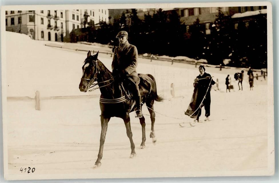 7500 St. Moritz Privatfoto AK Winter Skijöring