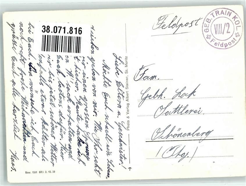St. Moritz, Feldpost Geb.Train Kol. VIII/2
