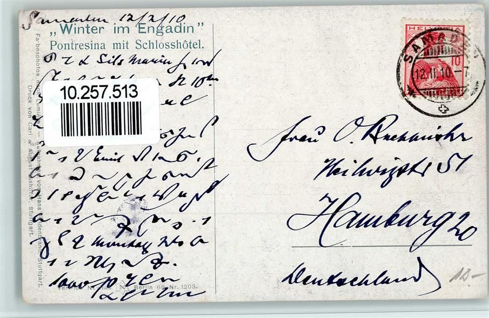 7504 Pontresina 1910 - Winter im Engadin Pontresina mit Schlosshotel Winter
