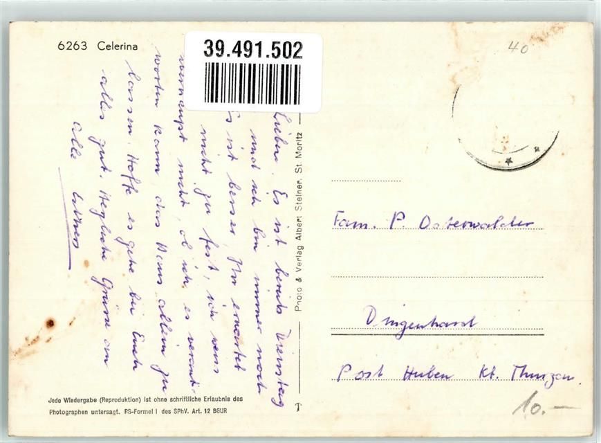 Celerina/Schlarigna, Verlag u. Fotograf Albert Steiner
