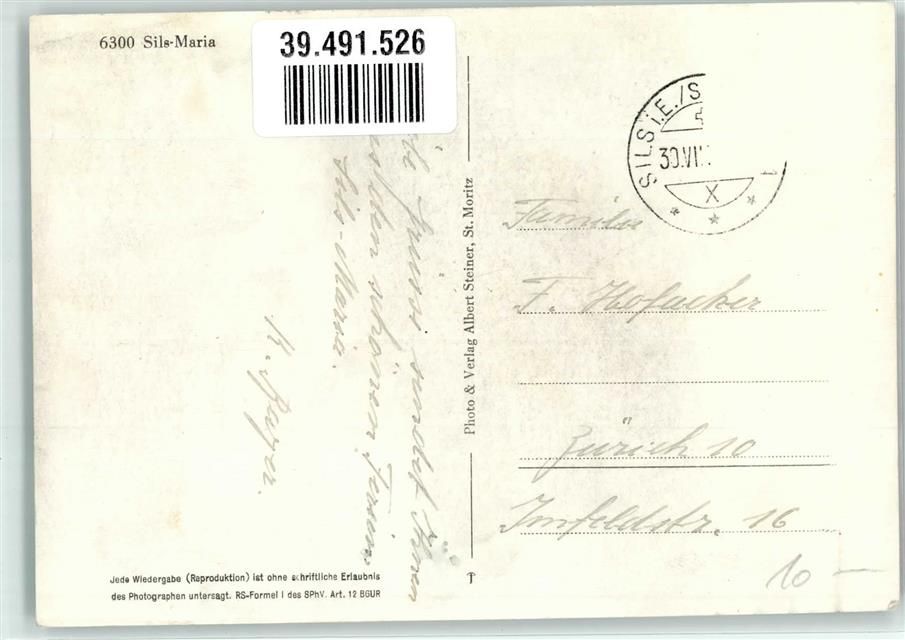 Sils/Segl Maria, Verlag u. Fotograf Albert Steiner