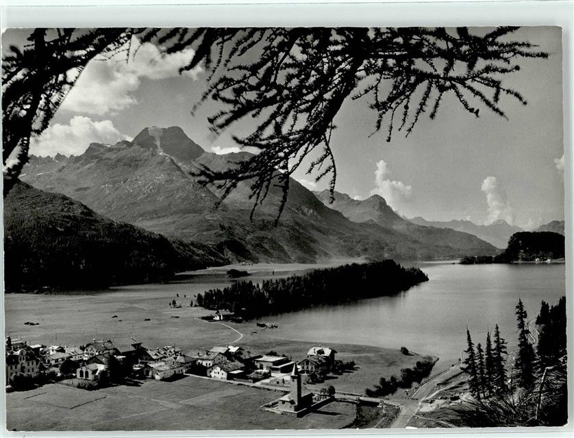 7515 Sils/Segl Baselgia - Blick mit Silsersee Chaste Piz della Margna