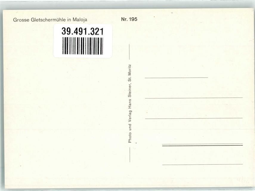 Maloja, Verlag u. Fotograf Hans Steiner Grosse Gletschermühle Nr. 195