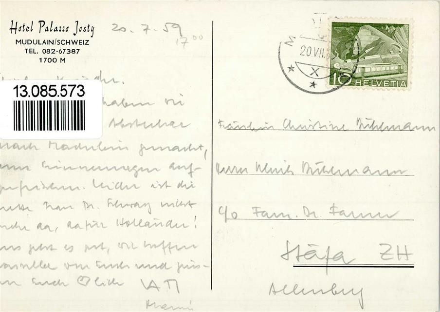 7523 Madulain 1959 - Hotel Plazzo Josty