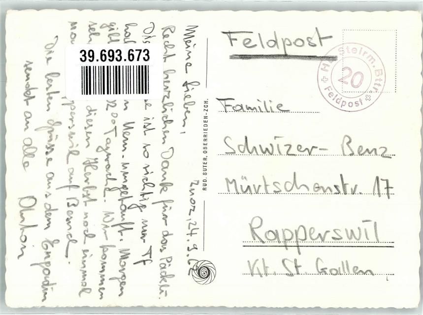 7524 Zuoz - Feldpost Batterie 20
