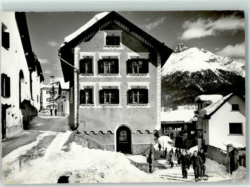 7525 S-chanf - Dorfpartie mit Piz d'Esen Winter