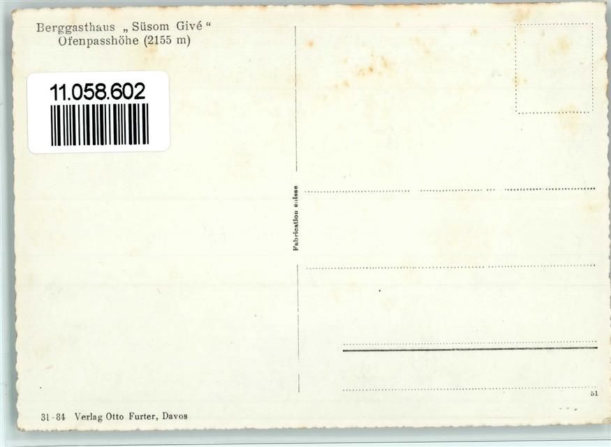 7532 Tschierv - Berggasthaus Süsom Give Ofenpasshöhe