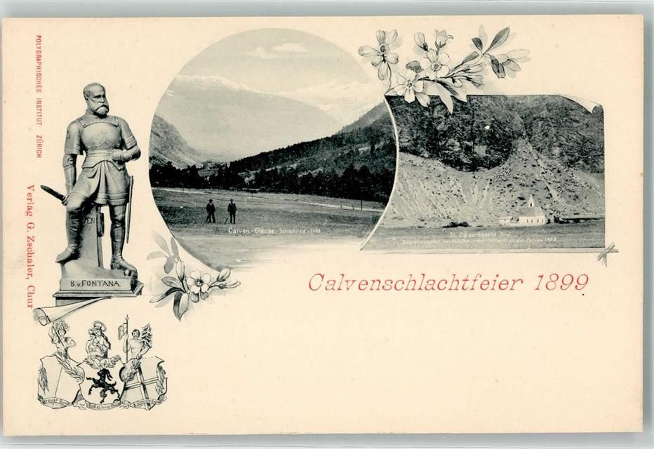 Müstair, B. v. Fontana St. Cäsarkapelle Calven Clause Schlachtfeld Calvenschlachtfeier Wappen