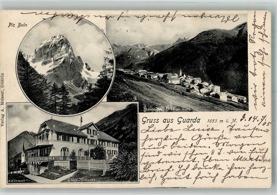 7545 Guarda 1905 Foto AK Hotel Meisser Piz Buin