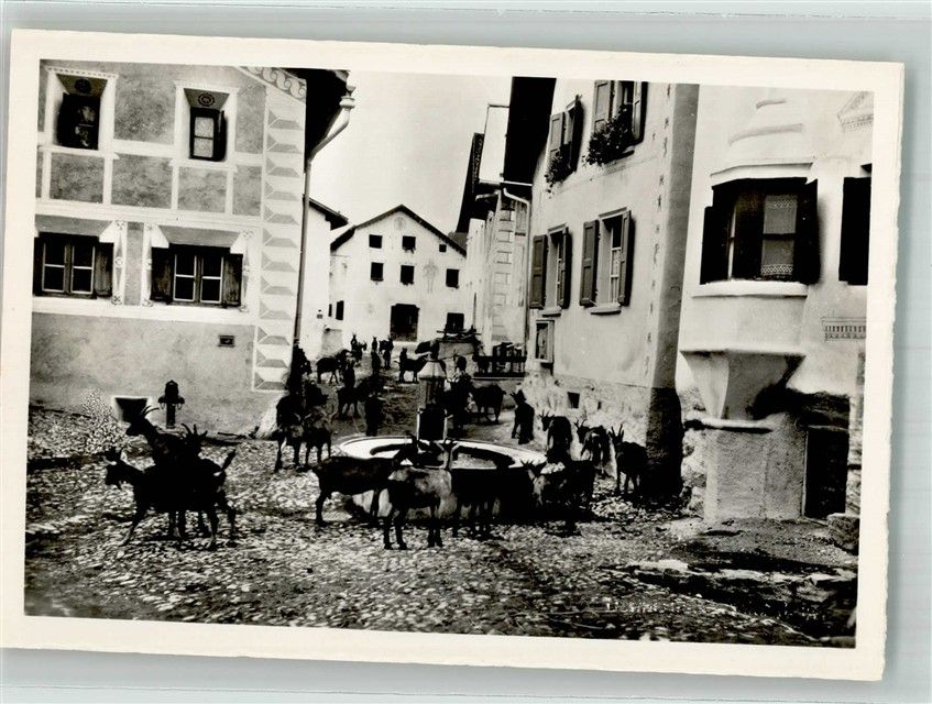 7545 Guarda Foto AK Ziege Dorfbrunnen