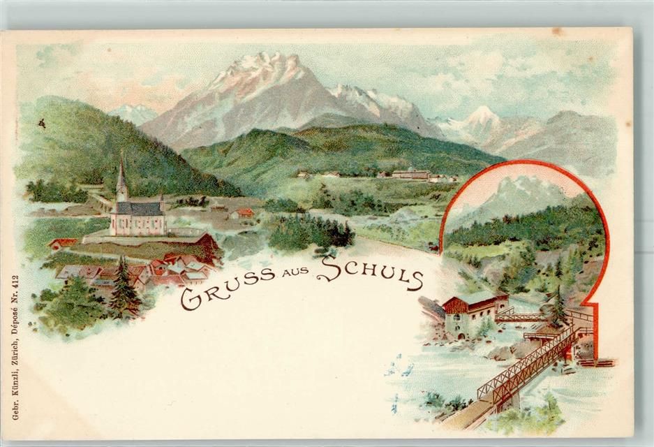 7550 Scuol Schuls Lithographie