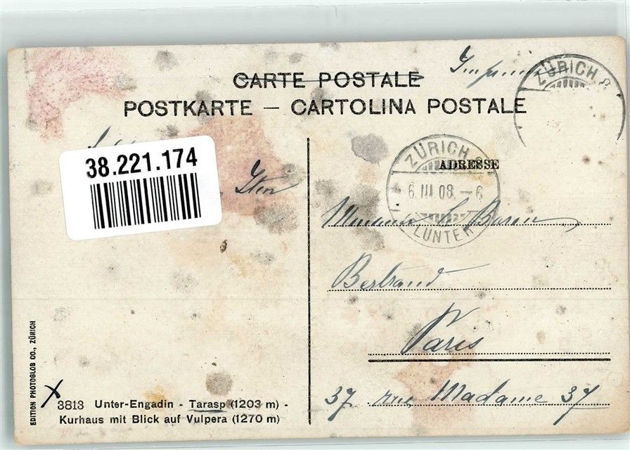7553 Tarasp 1908 Gebrauchsspuren Hotel Kurhaus