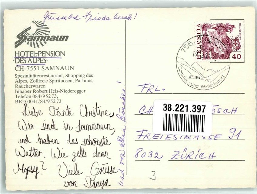 7563 Samnaun Dorf Foto AK Hotel Pension des Alpes