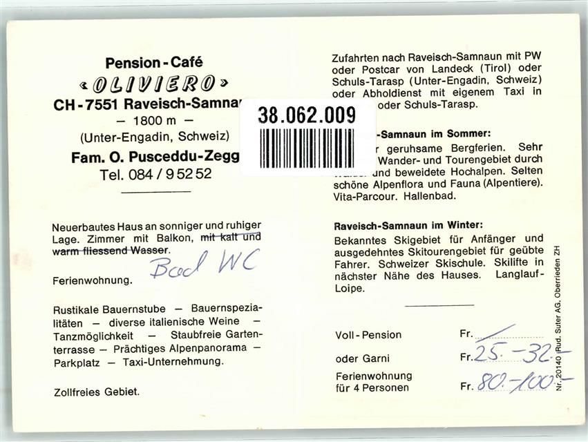 Samnaun Dorf, Pension Cafe Oliviero Raveisch-Samnau