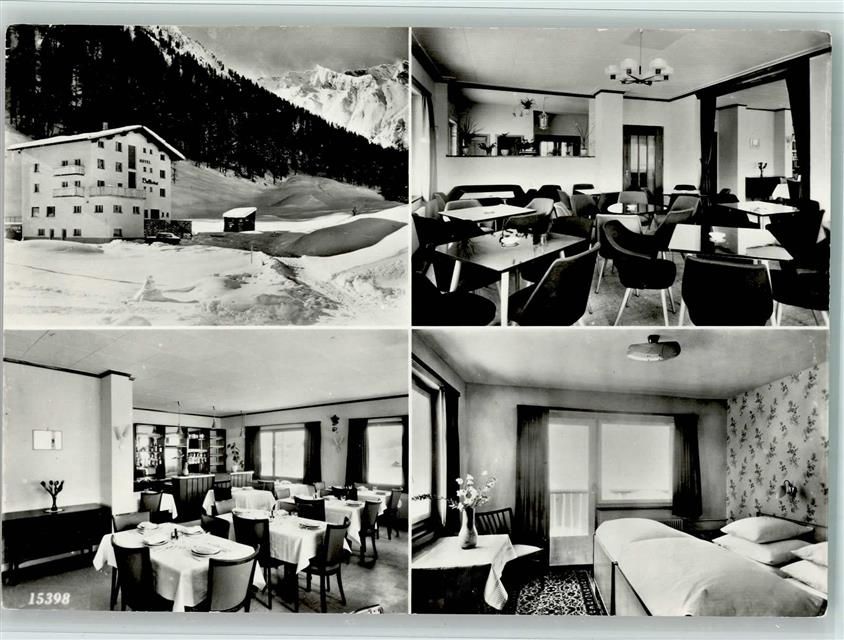 Samnaun Dorf, Hotel Bellevue Aussen- und Innenansicht Winter