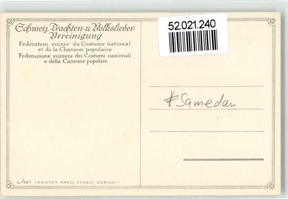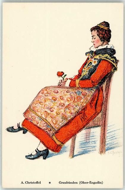 7563 Samnaun Dorf Künstlerkarte Trachten sign. Christoffel