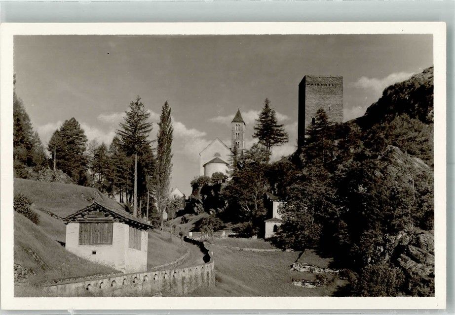 7606 Promontogno Foto AK Burg Ruine Castlmur Kirche Nossa Donna