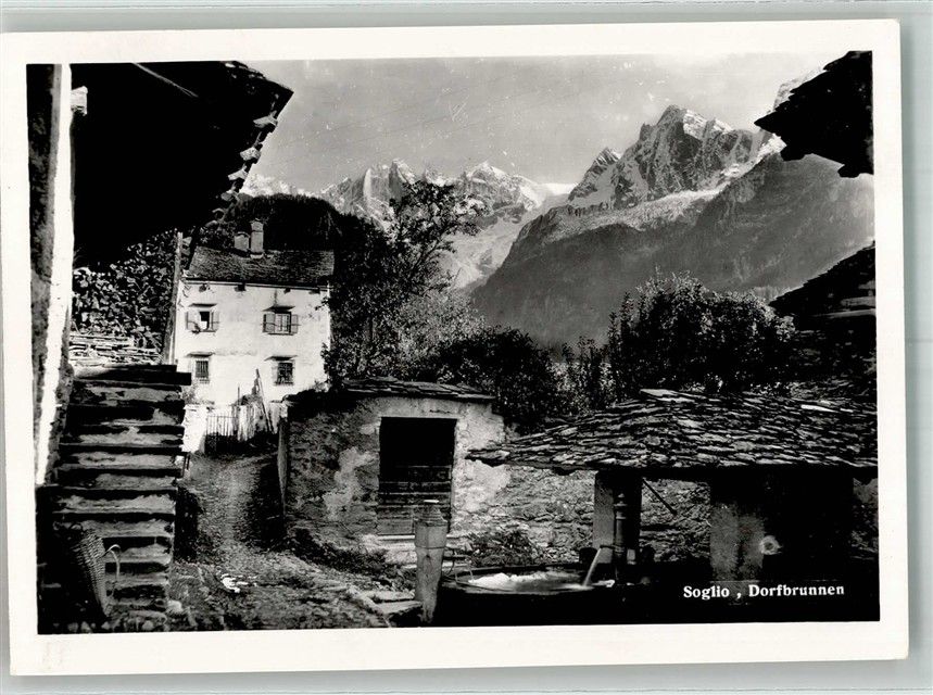 7610 Soglio 1956 Foto AK Dorfbrunnen