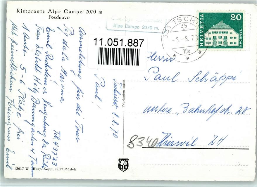 7742 Poschiavo - Saluti da val di campo Ristorante Alpe Campo