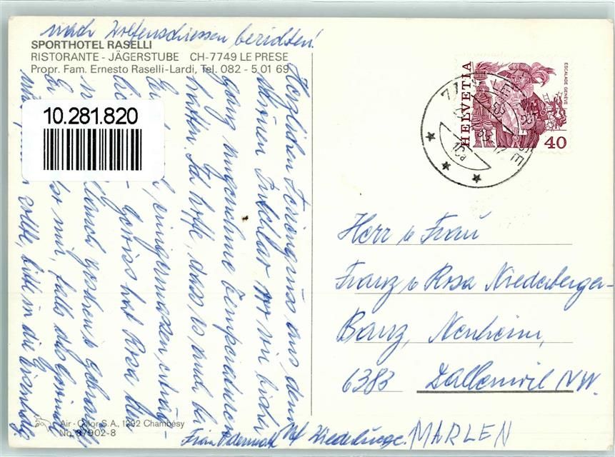 7746 Le Prese - Sporthotel Raselli Ristorante Jägerstube Oldtimer Wappen