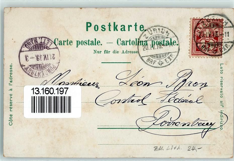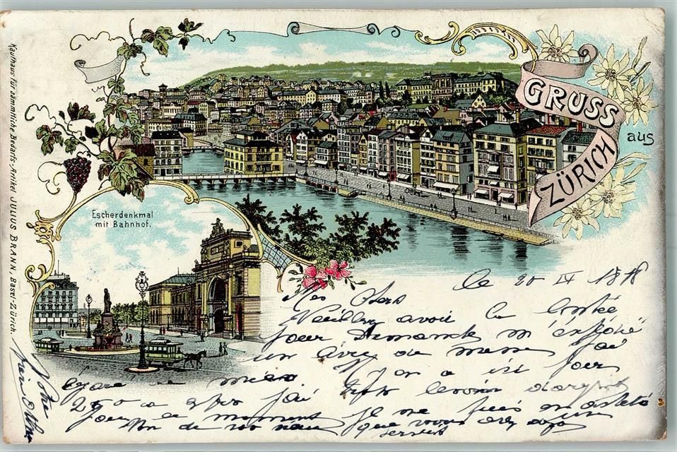 8000 Zürich 1899 Lithographie Escherdenkmal mit Bahnhof