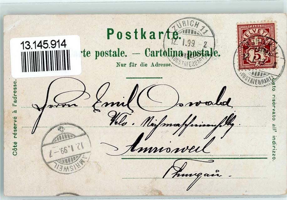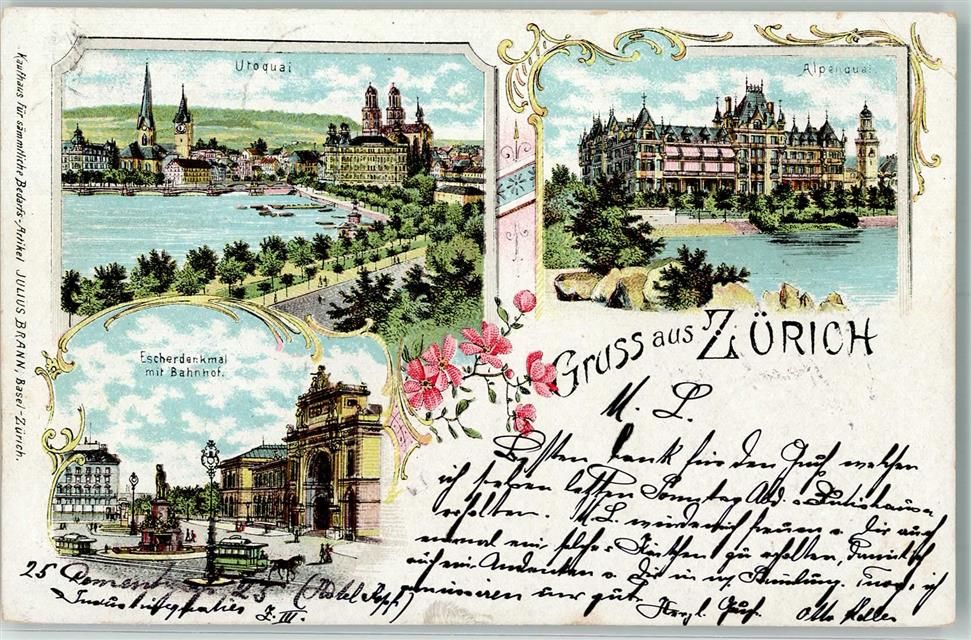8000 Zürich 1899 Lithographie Utoquai Alpenquai Escherdenkmal mit Bahnhof