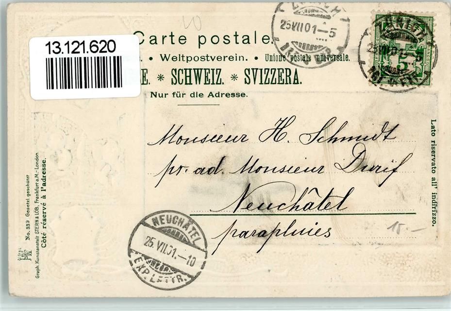 8000 Zürich 1901 Lithographie / Prägedruck Blick von der Quaibrücke auf die drei Hauptkirchen Jugendstilrahmen