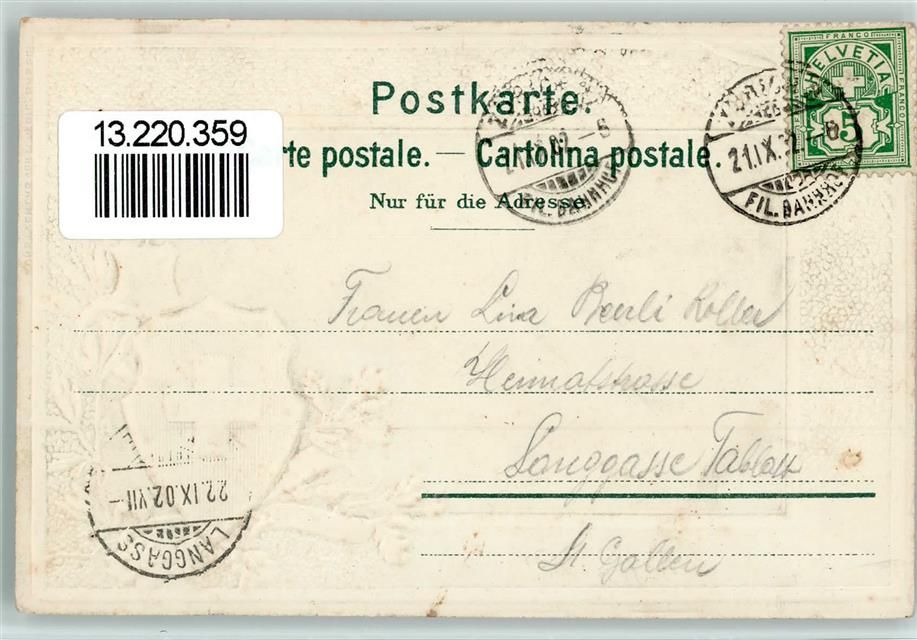 8000 Zürich 1902 Passepartout Prägedruck Wappen sign HF Lithographie
