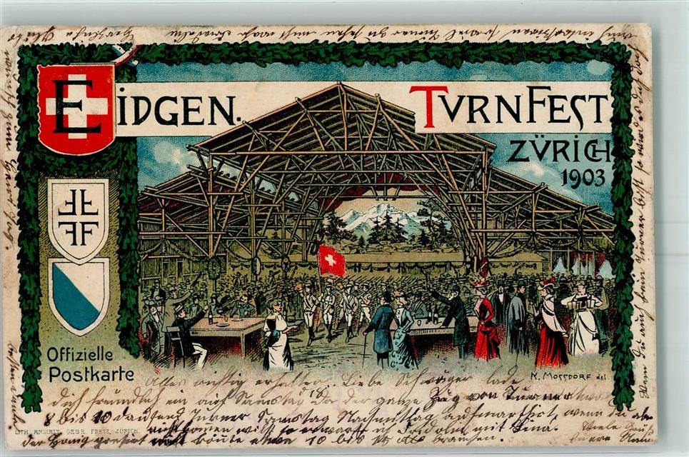 8000 Zürich 1903 Gebrauchsspuren Lithographie offiz. Postkarte sign. Mossdorf