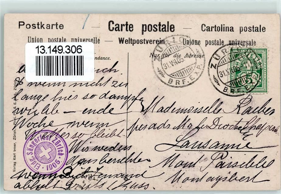 8000 Zürich 1905 - Festspiel am Eidgen. Sängerfest