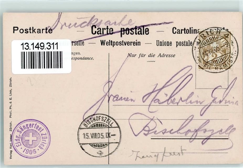 8000 Zürich 1905 - Festspiel am Eidgen. Sängerfest
