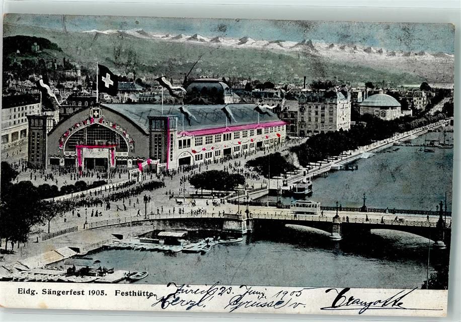 8000 Zürich 1905 Gebrauchsspuren Festhütte Sängerfest 1905 Straßenbahn AK